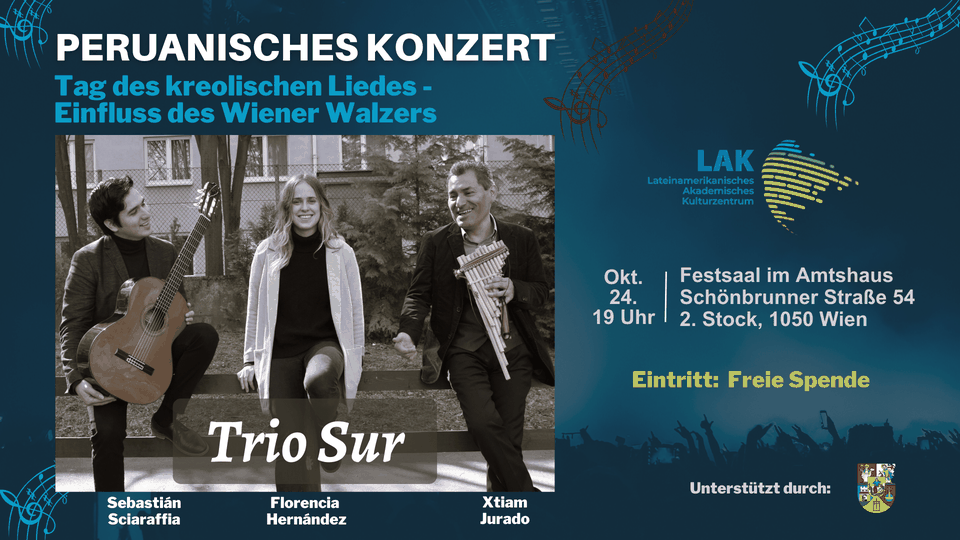 Das LAK veranstaltet am Dienstag, den 24. Oktober 2023 um 19:00 Uhr / Einlass 18:30 ein Konzert im Festsaal des Amtshaus Schönnbrunner Straße 54 im 2. Stock, 1050 Wien